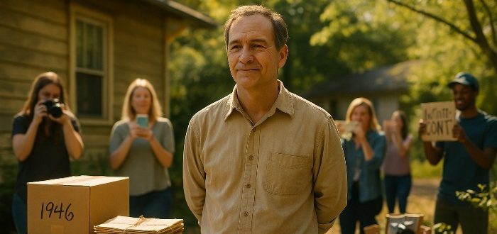 Stajao je na vratima velike kuće, držeći iznošeni kožni novčanik. Jutarnje sunce upravo je izlazilo, obojavajući ulicu u zlatno. Zrak je mirisao na kruh iz pekare na uglu,