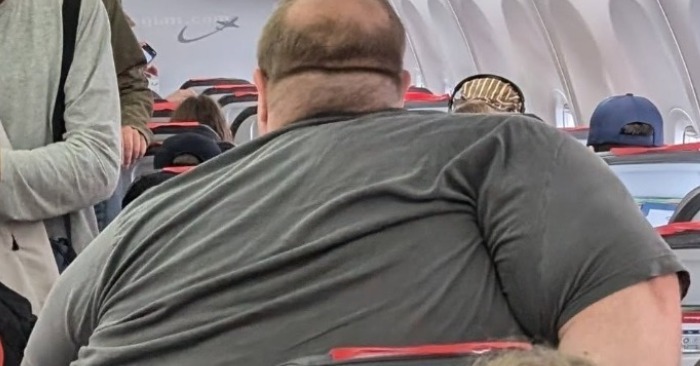 Muškarac u sivoj majici sjedio je blizu prolaza. Tijelo mu se lagano ispružilo u srednje sjedalo, a nekoliko ljudi počelo je gledati, šaptati i izmjenjivati neugodne poglede.