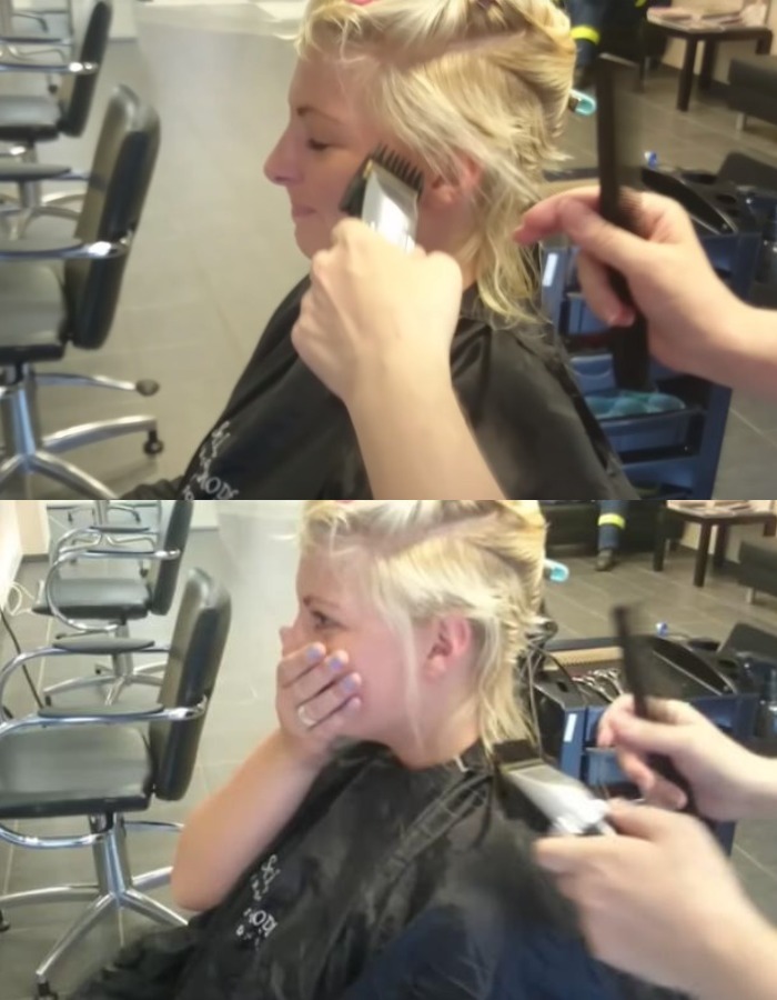 Uzevši trimer u ruku, stilistica je počela brijati ženinu kosu. Isprva je klijentica bila zapanjena, bez riječi dok je gledala kako joj pramenovi otpadaju. Izraz lica joj je bio potpuni šok. Međutim, Lee je nije namjeravala ostaviti ćelavom – imala je stilski plan na umu.