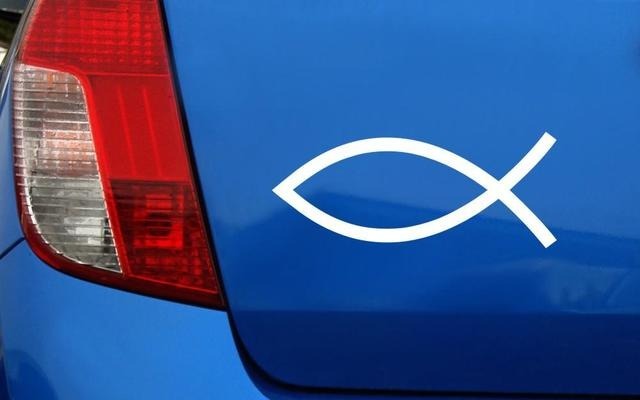 Značku ili naljepnicu u obliku ribe obično na automobile stavljaju kršćani različitih denominacija.