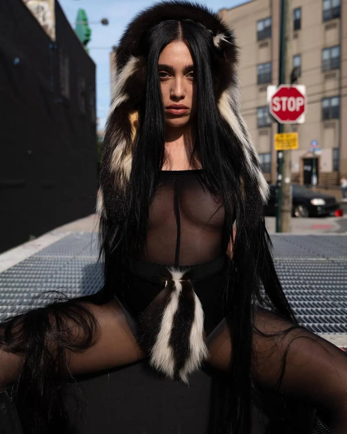 Na svom najnovijem snimanju, Lourdes je nosila samo tajice, donje rublje i čizme, s krznenim dodacima oko struka i u kosi. Smjeli izgled istaknuo je njezinu figuru, a istovremeno je zadržao umjetnički i modno usmjerene slike. Prozirne tajice navučene visoko preko prsa poslužile su kao jedina maska, dodajući neobičan zaokret stilu.