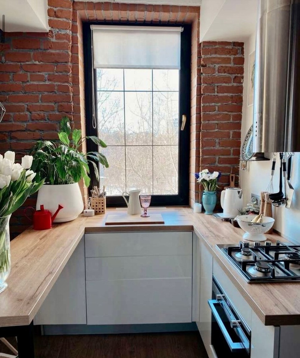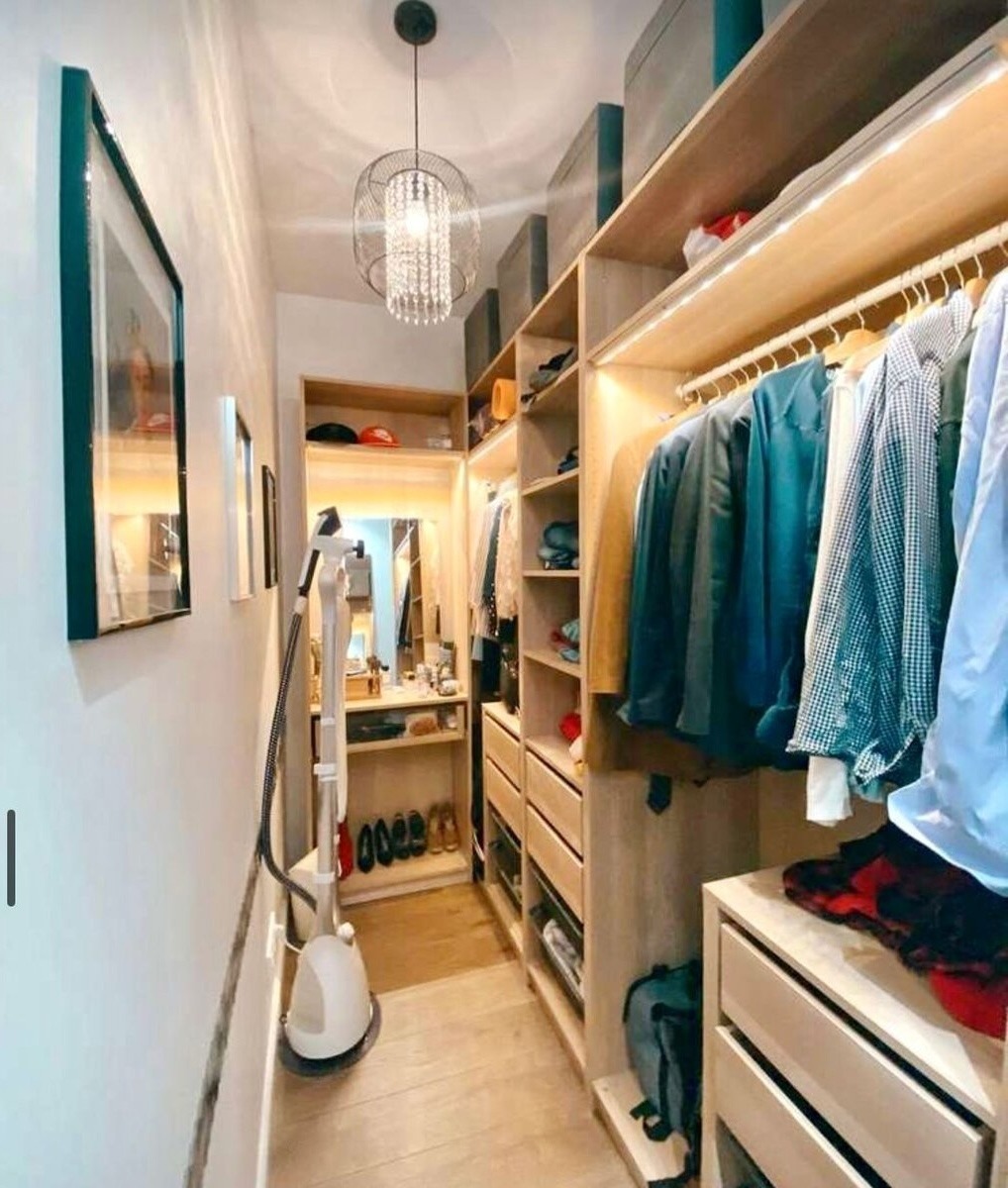Naravno, nisu prošli bez preuređenja, a sada stan uključuje elegantnu kuhinju s bijelim zidovima i odgovarajućim setom, kao i tamni prostor sa šankom.