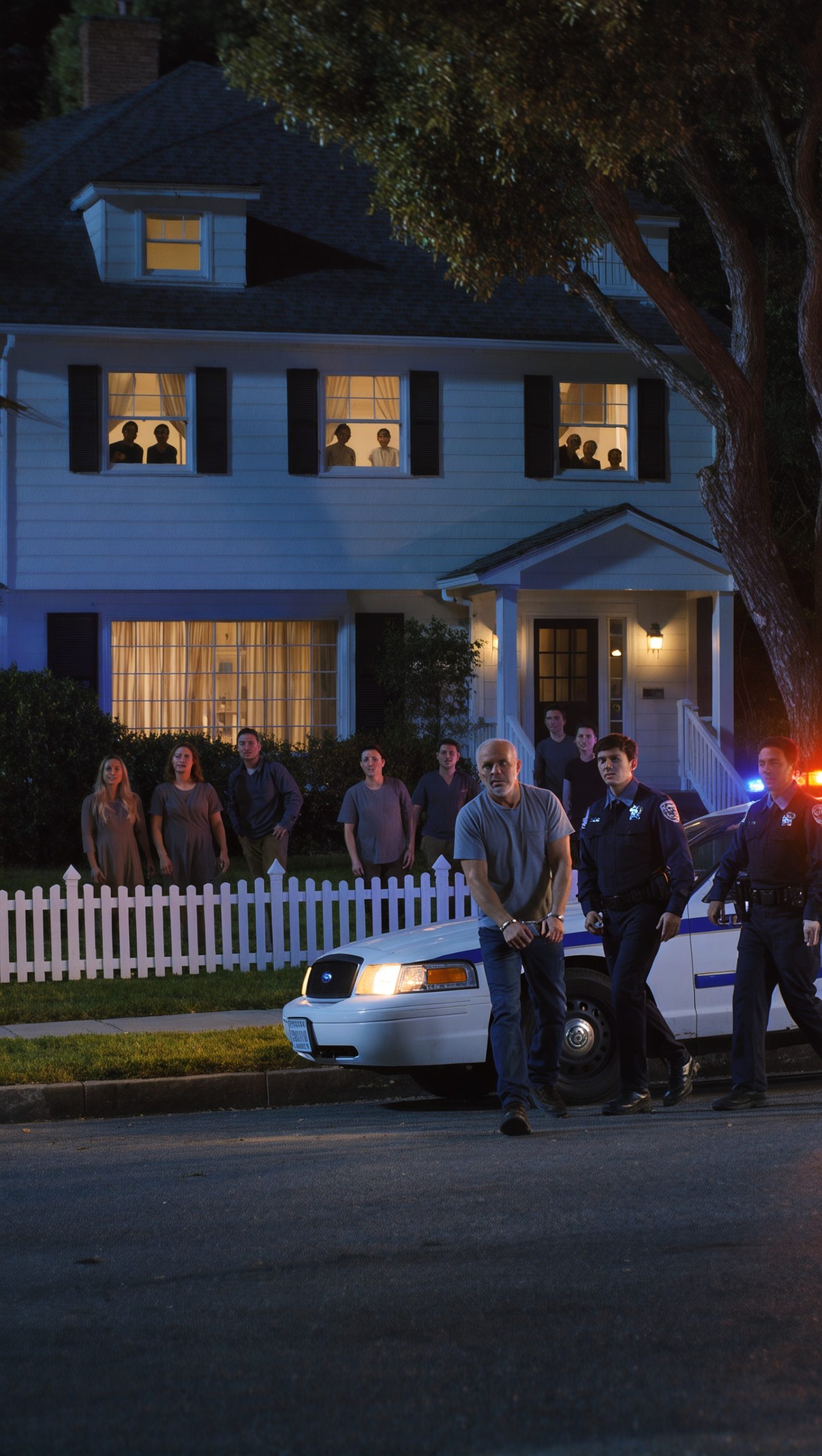 Jedne tihe jesenske noći, mir Maple ulica narušen je. Crvena i plava svjetla bljesnula su, sirene su zavijale, a policijski automobili preplavili su urednu kuću gospodina Harrisa. Susjedi su provirivali kroz zavjese, vilice su im padale dok su ga policajci izvodili u lisicama.