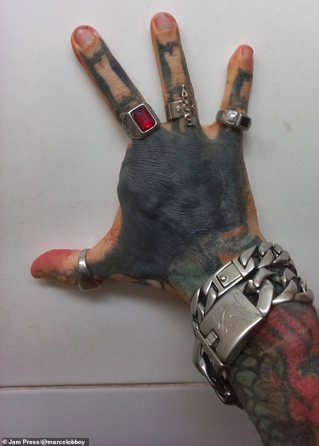 Poznat po svom rascijepljenom jeziku, metalnim zubima i kožnim implantatima, Marcelo je već potrošio gotovo 30.000 funti mijenjajući svoje tijelo. U prošlosti je čak i prepolovio ruku, što je nazvao prvim u svijetu.