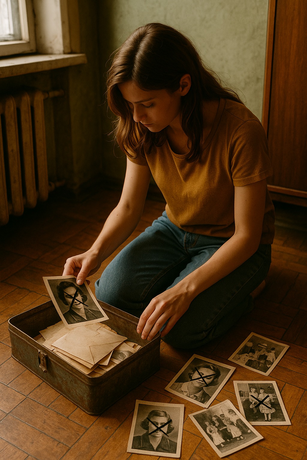 Unutra su bili svežnjevi pisama, vezanih špagom, i… nekoliko požutjelih fotografija. Prikazivale su mladiće u vojnim uniformama. Ali ono što je bilo jezivo bilo je ovo: netko je svima nacrtao križeve na licima tintom.