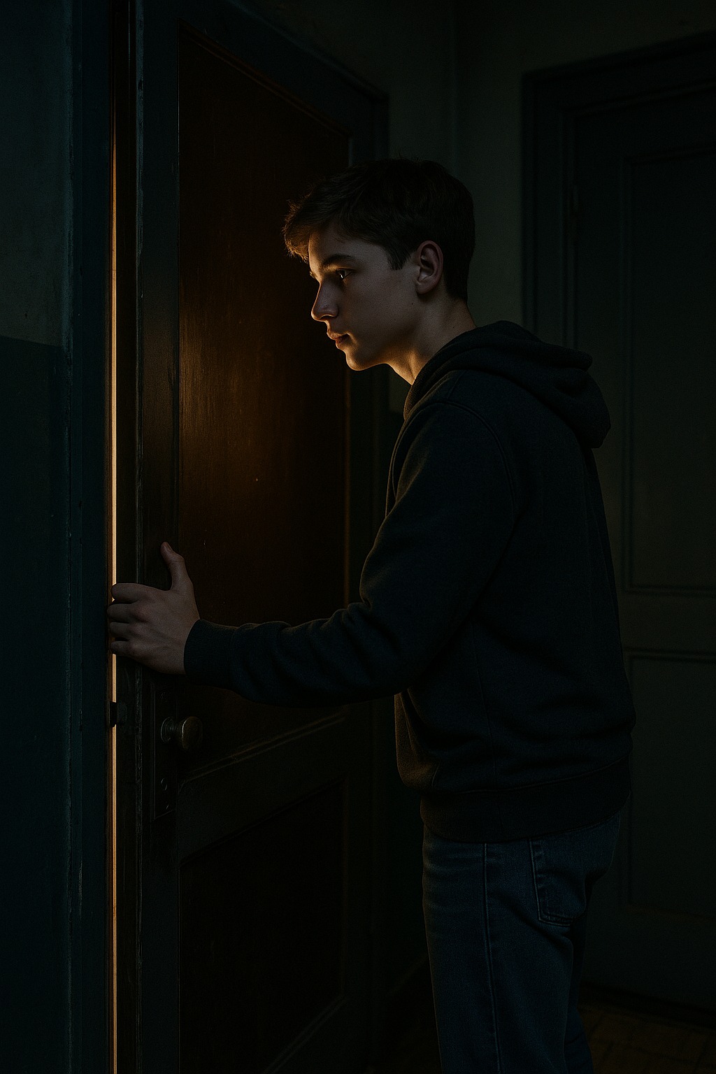 Izašao je u hodnik i zaustavio se ispred susjedovih vrata. Pokucao je. Tišina. Opet. Još uvijek ništa. Zatim je pažljivo pritisnuo kvaku – i na njegovo iznenađenje, vrata su bila otključana.