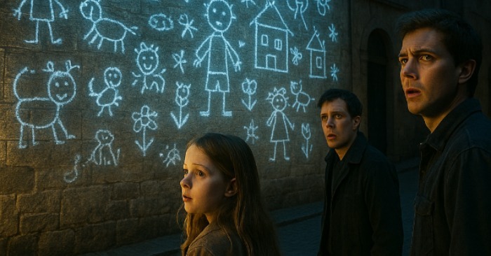 Prolazile su godine. I odjednom se na starom zidu blizu njihove kuće pojavio dječji crtež. Kuća, sunce, mali čovjek s dva repića – sve baš kao što je Emma nekoć nacrtala. Isprva su mislili da je to dječja nesreća. Ali crteži su se počeli množiti.