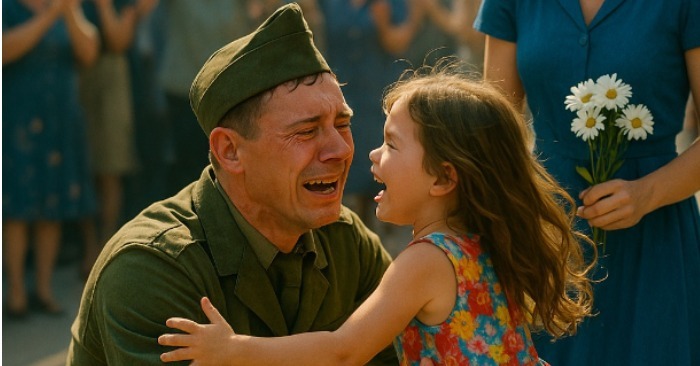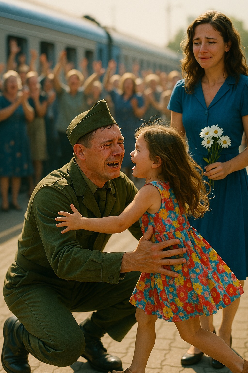 U početku se njegova kći ukočila, kao da nije mogla vjerovati svojim očima. Ali onda je iznenada skočila i potrčala ravno prema njemu. Pao je na koljena, ispružio ruke i jedva uspio prošaptati: “Moja djevojčica…” Bacila se u njegov zagrljaj i u tom trenutku tišinu u njemu zamijenio je glasan uzdah sreće.