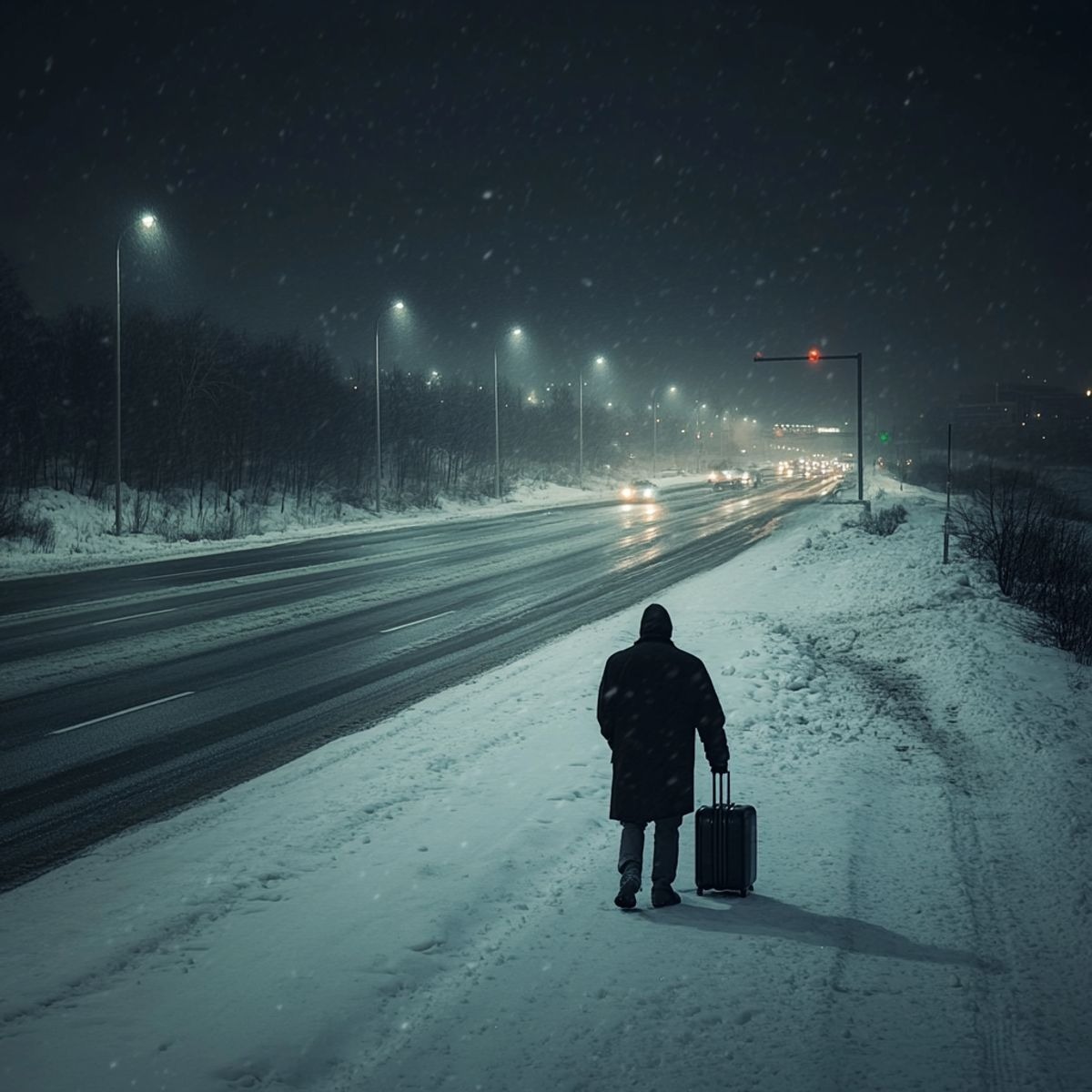 Ceļš veica asu līkumu, un tad es viņu ieraudzīju. Mani lukturi izgaismoja veca vīra siluetu, kurš gāja gar šosejas malu. Viņš bija salīcis uz priekšu, vilkās aiz sevis noplukušu koferi, viņa soļi bija lēni un smagi. Ap viņu virpuļoja sniegpārslas un pieķērās viņa plānajam mētelim. Viņš man atgādināja manu vectēvu – sen mirušu, bet nekad neaizmirstu.