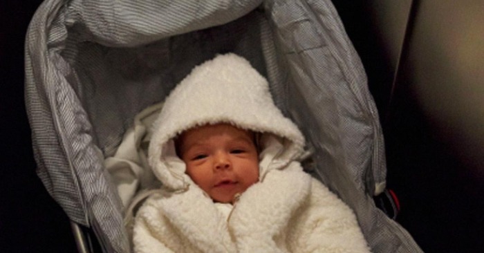 Es piegāju un uzmanīgi pavilku to gaismā. Apakša bija mitra no lietus, arī siksnas bija izmirkušas. Iekšā gulēja maza meitenīte, varbūt apmēram astoņas nedēļas veca. Ietīta rozā segā ar baltām zvaigznēm.