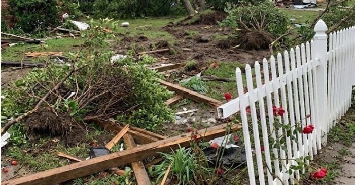 „Tas ir slikti,“ viņš beidzot teica. „Tiešām slikti. Viss pagalms ir pagalam. Terase vidū ir salūzusi, un žogs jūk ārā. Viņa ir salauzta.“
