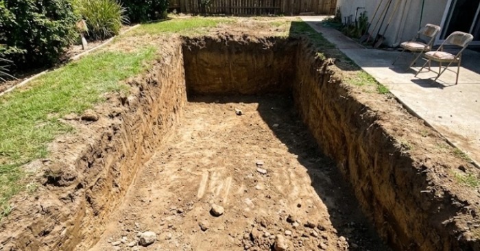 Han stoppet ikke en gang. «Hva ser det ut som? Jeg graver. Jeg får lagt inn et basseng her. Da er stedet i det minste verdt noe.»
