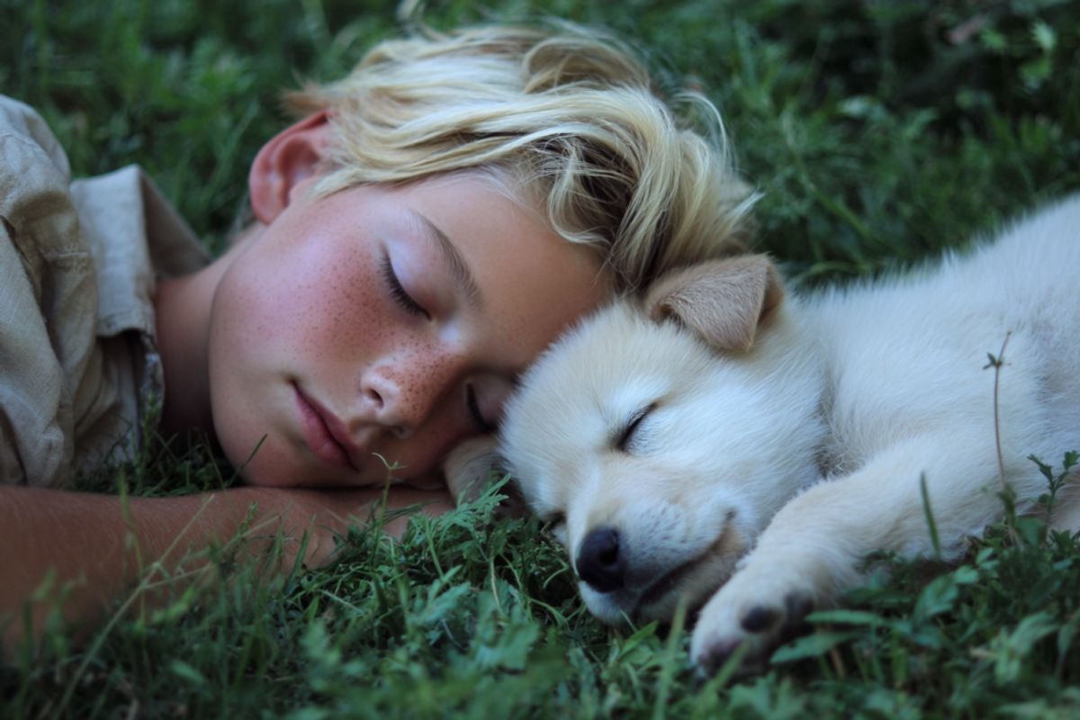 Es paskatījos uz Eli, kurš gulēja zālē blakus guļošam kucēnam.