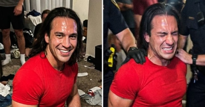 Tur, uz mūsu pašu lieveņa, viņu saslēdza rokudzelžos.