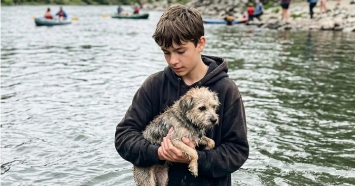 Pa vidu ūdenim vidēja izmēra brūns suns izmisīgi cīnījās, lai noturētu galvu virs virsmas. Tā ķepas kustējās veltīgi pret straumes spēku. Riešana jau bija kļuvusi vāja un nogurusi.