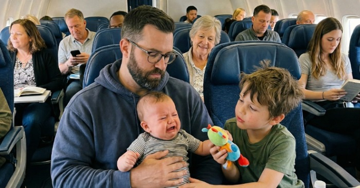 Viņa sešus mēnešus vecā meita Lilija jau stundām ilgi raudāja bez apstājas. Ne siltais ēdiens, ne šūpošana, ne mūzika nepalīdzēja. Spriedze lidmašīnā pieauga, pasažieri sāka zaudēt pacietību, un Endrū pirmo reizi savā dzīvē jutās pilnīgi bezspēcīgs.