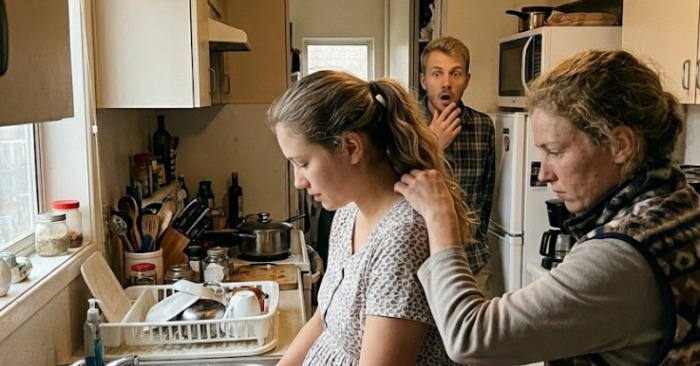 Virtuvē Lūsi bija viena. Viņai astoņi mēneši vēders, nogurums redzams, rokas sarkanas no ilga trauku mazgāšanas.