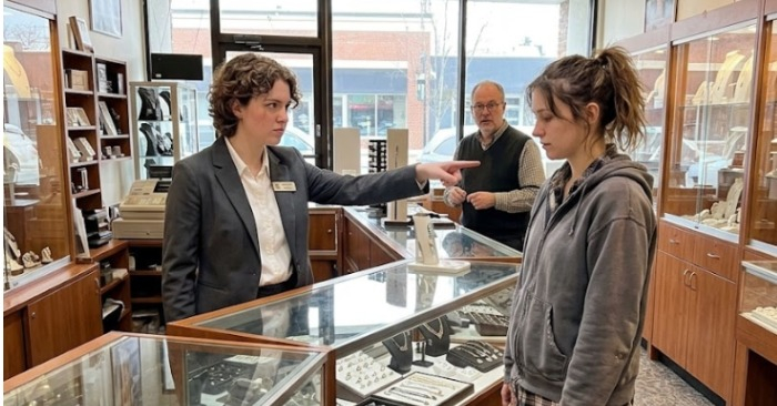 „Svarīgs jums, varbūt,“ sieviete viņu pārtrauca, „bet mēs strādājam ar sertificētām rotaslietām.“