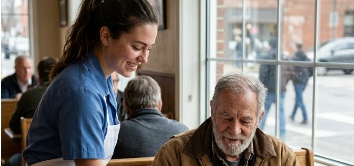 Kāda jauna viesmīle katru dienu slepus deva ēst vientuļam sirmgalvim… līdz vienā rītā pie viņas darba vietas piebrauca divi melni džipi — un viss mainījās. Vai tu kādreiz