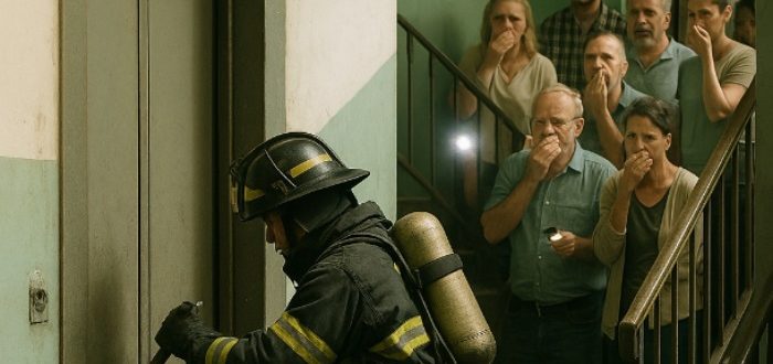 Jedne večeri, struja je iznenada nestala u velikom stambenom kompleksu. Svjetla su se ugasila u svim ulazima, liftovi su se smrzli, a ljudi su vrišteći potrčali u stubišta.